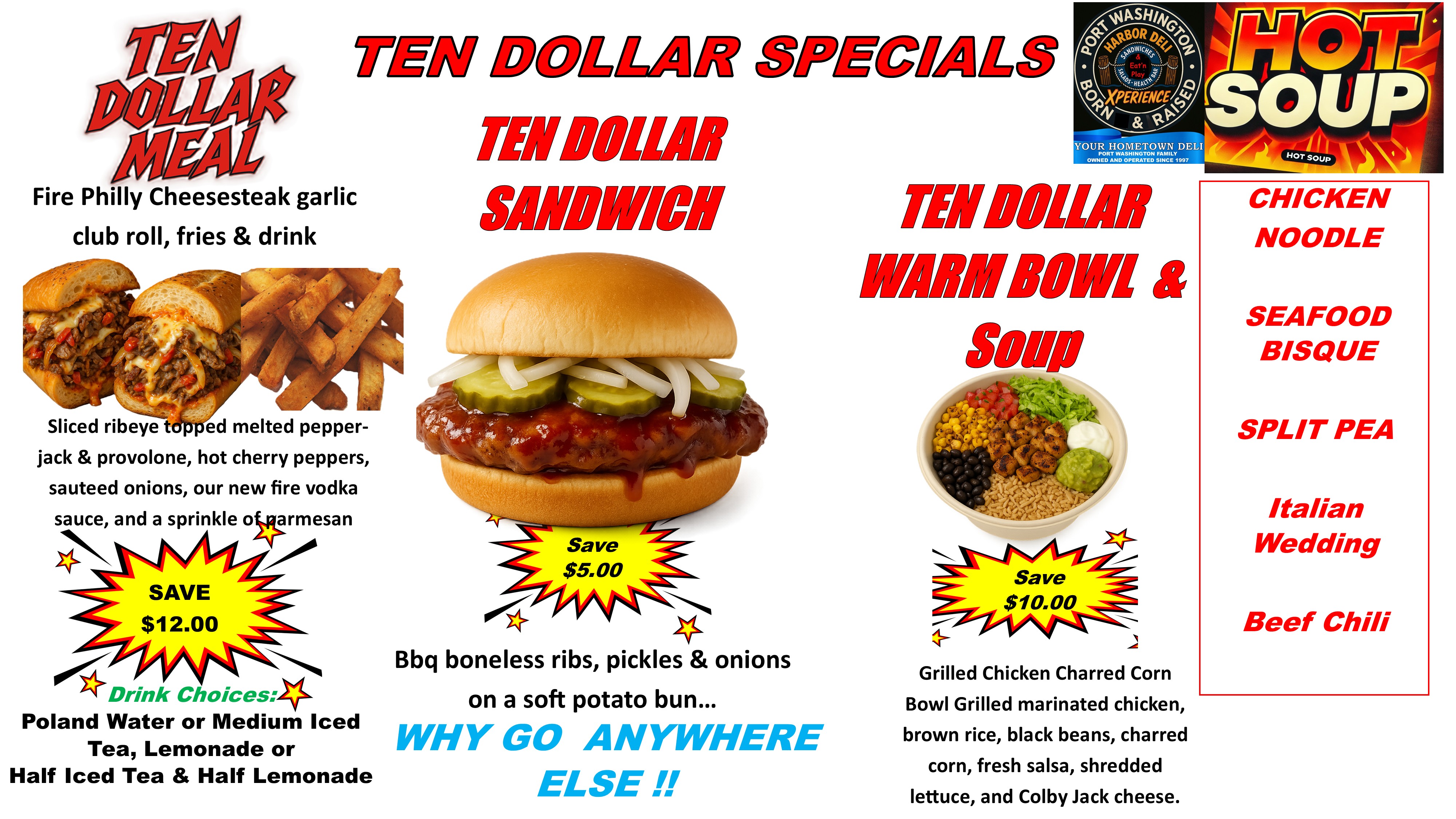 It all started a long time ago, back in 1950’s when a grocery / deli / dairy store was opened under the name Ziggy’s Harbor Dairy. A decade later the name was changed to Harbor Deli, and this was the name that it kept when. In June, 1997 after spending his whole working life in the food/retail, customer service business, Harry DeFeo, his lovely wife Diane and children purchased it and decided to make it a place where all the families from the neighborhood would be able to meet and talk and laugh and make it the best deli Port Washington had ever seen.